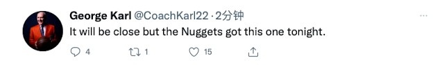 Before the game, former NBA coach and former Nuggets coach George Carl made a prediction of the game. He wrote: “This game will be played very hard but the Nuggets will win.”