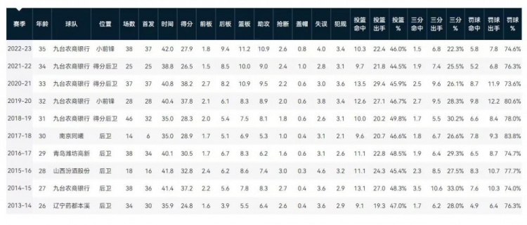 The following figure shows Jones’s data for each season during Jilin men’s basketball: