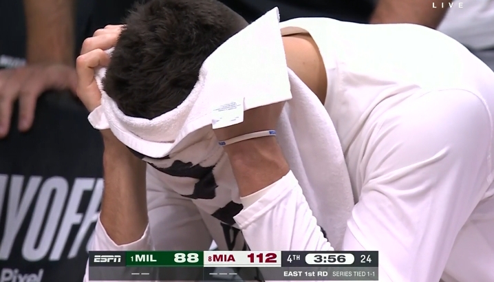 Live broadcast on April 23 News NBA playoffs G3, Heat vs Bucks last 4 minutes or so, Oladipo landed injured.