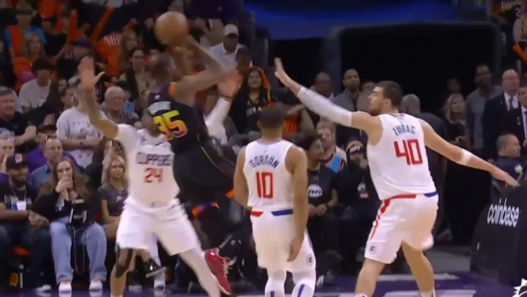 After Durant played, Booker made 5 of 6 shots in the penalty area in the last half-the Clippers placed a small ball array, Durant opened the space again and the penalty area was empty.
