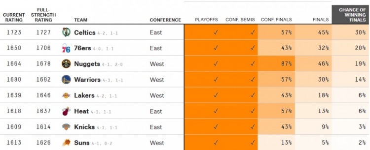After the game, according to the prediction of big data agency FiveThirtyEight model, the probability of Warriors getting promoted to the West rose to 57%, while the Lakers dropped to 43%.