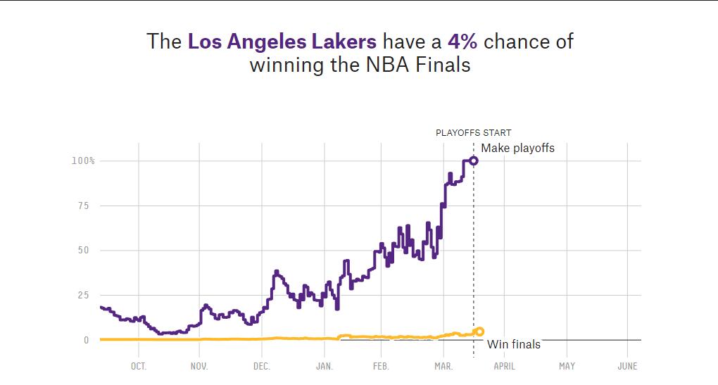 After the game, the big data agency FiveThirtyEight model prediction was updated. The probability of the Lakers eliminating the grizzly bear was 54%, and the probability of reaching the West End final was 32%. There was a 13% probability of reaching the finals, the probability of winning the championship is 4%.