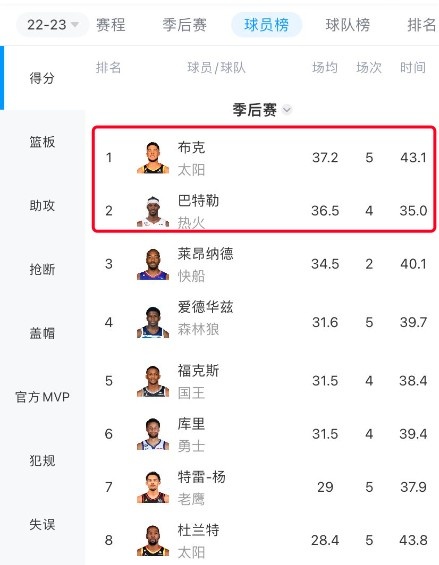 So far, Booker has averaged 37.2 points in the playoffs this year, surpassing Butler (36.5 points) and becoming the first in the league.