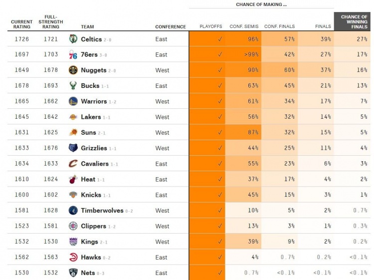 After the big data organization FiveThirtyEight, the promotion probability of this group was updated.