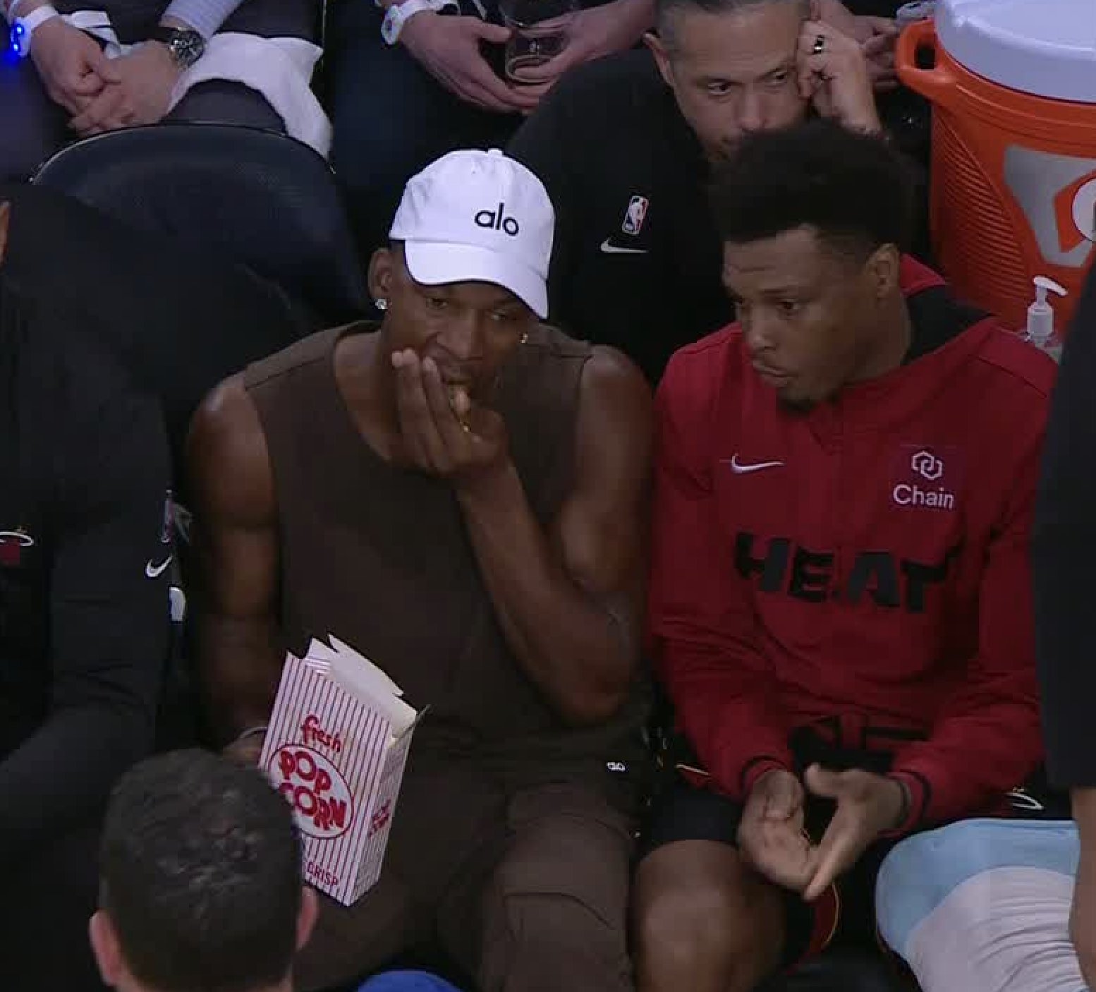 Butler took off his coat half after watching the match and ordered a bag of popcorn to eat.