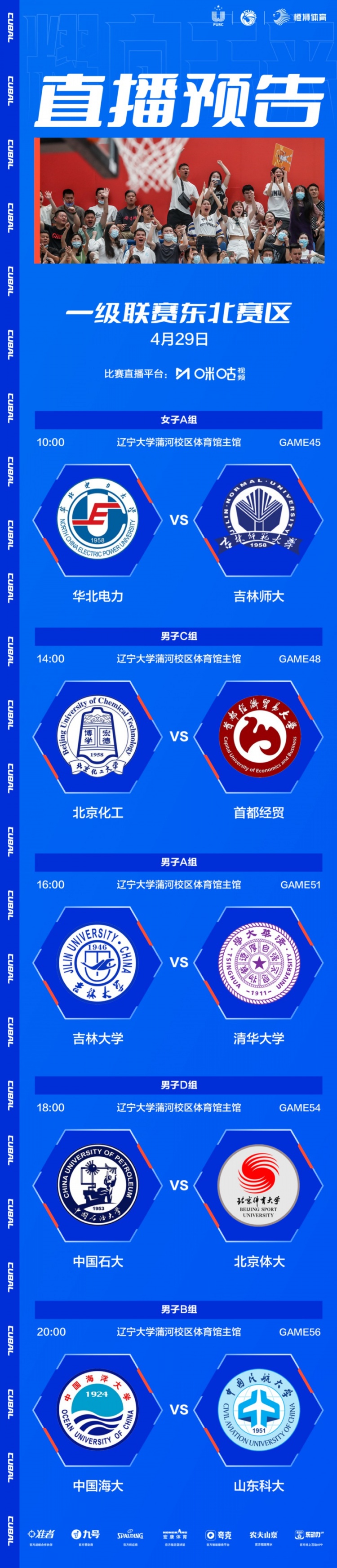 On April 28, the Northeast Division entered the third competition day. In women’s basketball, China Haida, Beijing Normal University, Tsinghua University and Peking University continued to win in a row. In terms of men’s basketball, Group A Tsinghua University won two consecutive victories, Group B Peking University Leck China sea University won the second victory, Group C ranked the first economic and trade, Beijing Chemical industry continued to maintain an undefeated record, and A strong duel will be launched tomorrow! Group D China civil aviation successfully attacked the North University and won a winning streak; Northeastern University defeated Jilin University! Tomorrow’s focus battle, the first economic and trade against Beijing Chemical Industry, North Sports University against China Stone University!