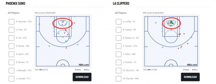 The Clippers recorded the comparison between Durant and weishao shooting points after the game. Weishao frequently killed to the basket. The whole game did not get free throws, while KD only shot twice around rim.