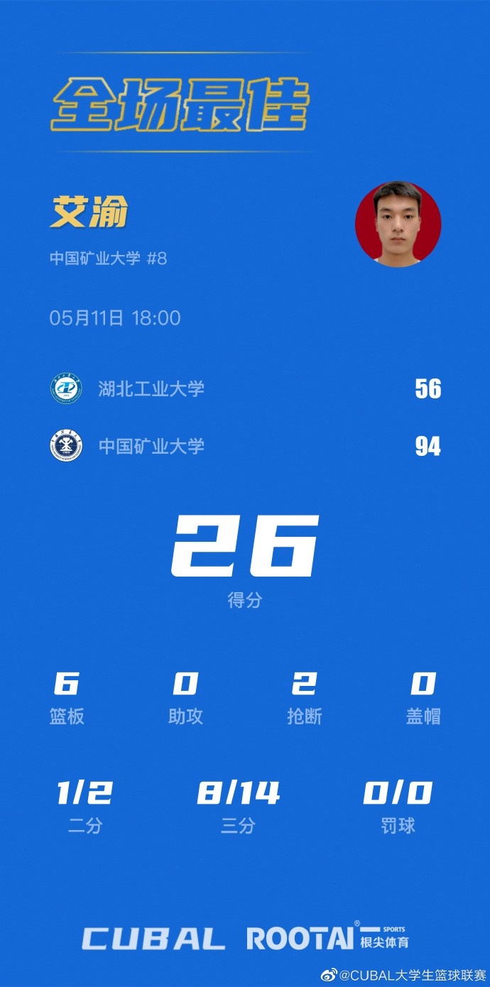 China Mining University: Ai Yu 26 points 6 plates, Li Xinzhe 15 points 7 plates, He Zhao Jie 11 points, LV Kegu 10 points, Dong Zimo 9 points, Shao Yuxuan 7 points 7 plates