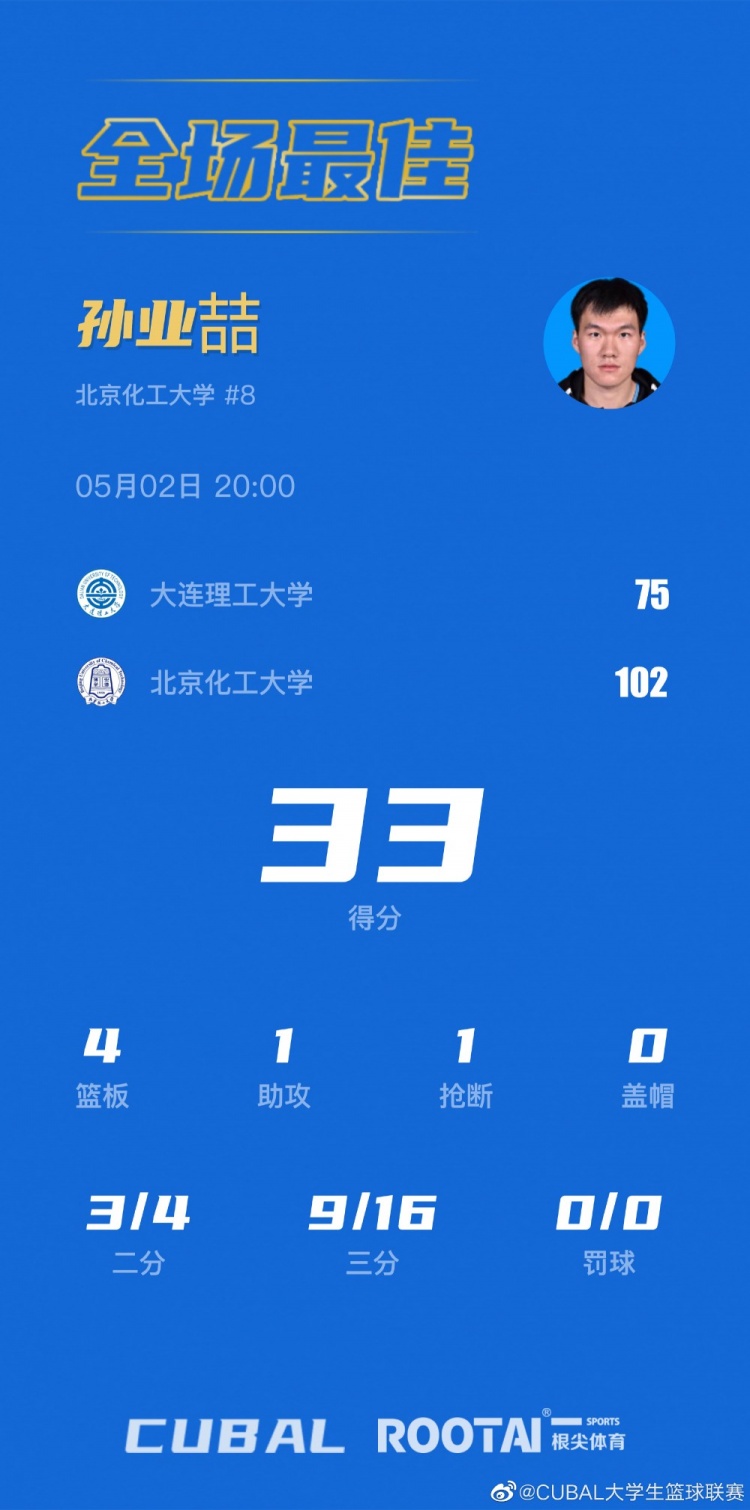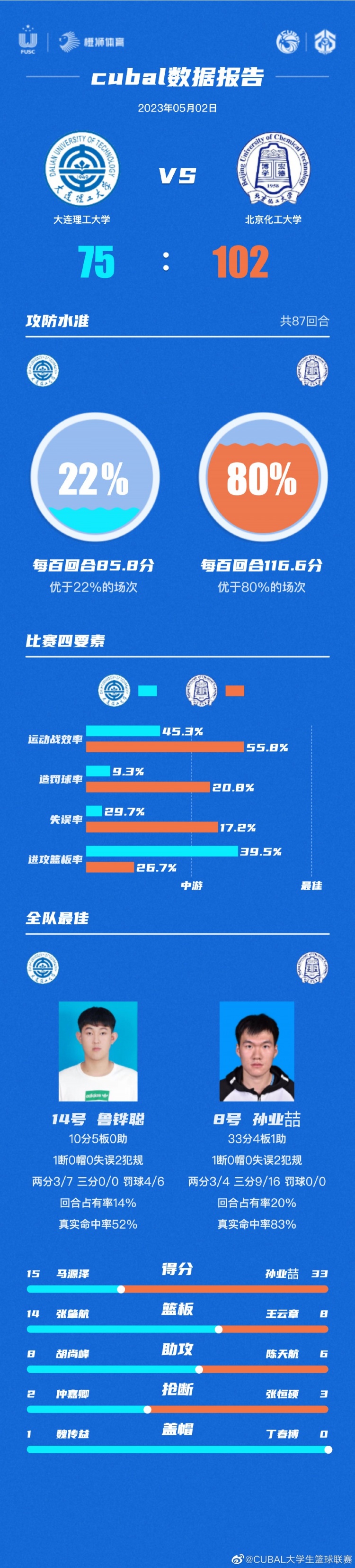 At the end, Hu Shangfeng first scored three points, and then quickly reduced the score difference. After the continuous offensive error of the power loss of the North chemical industry, the North chemical industry called a pause. After the suspension, beichemical quickly adjusted its tactics. Under the pressure of the whole court, it gained many counterattacks through snatching and rebounding, and finally recovered the advantages of hand feeling expansion. The final score was 75-102, and Beijing Chemical won.