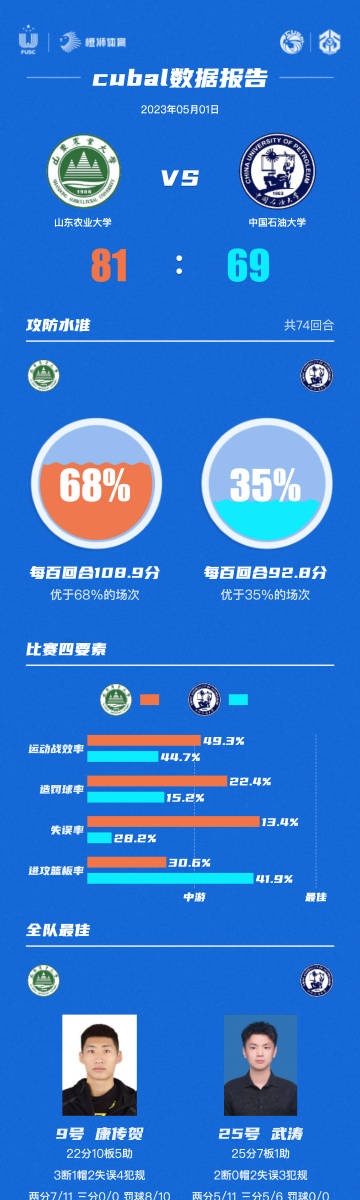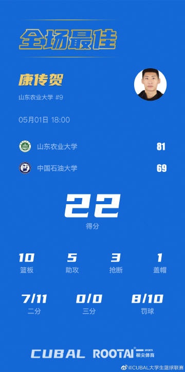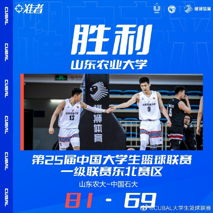 At the end, Shi Da adjusted the state to expand the bottom line tactical pull space, and the outside line hit two consecutive three points to quickly narrow the score difference, and shannong called out to pause. After the suspension, the mountain farmers pressed bag clip, and it was difficult for Shi Da to find an opportunity. Finally, the game ended with a score of 81-69. Shandong Agricultural University advanced to the top eight in Northeast China.