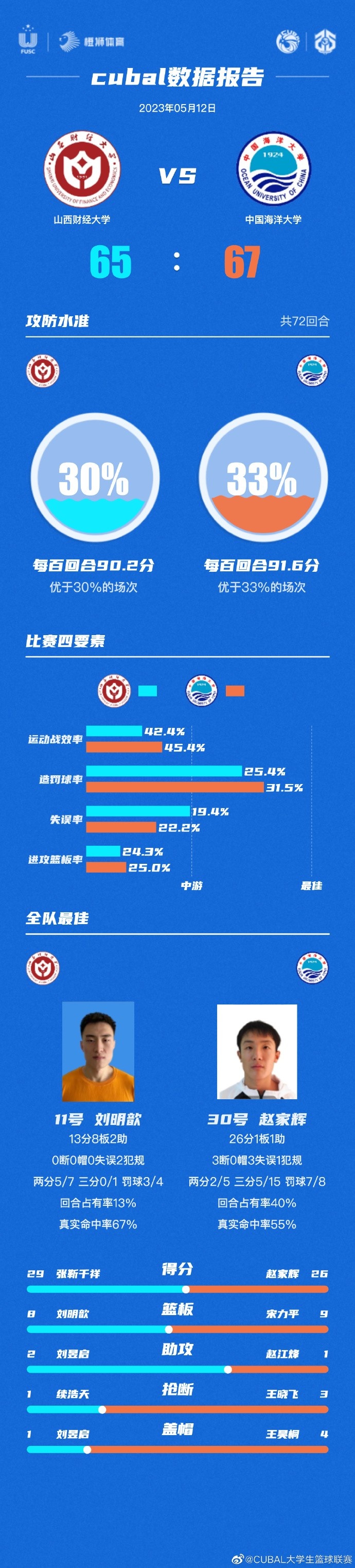 Live broadcast on May 12th news CUBAL play-off, Shanxi Finance University against China sea University.