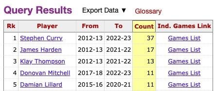 According to statistics, this is the 38th time Curry’s career has cut 30 + and scored 5+3 points in the playoffs. The NBA history is the first, and the second is Harden’s 17 times. The first five are as follows: