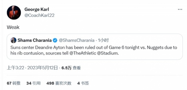 Live broadcast on May 12th according to the famous Shams report, sources revealed that the Suns center Elton would be absent from today’s G6 against the Nuggets due to rib bruising.