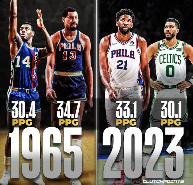According to statistics, this is the first time since 1965 that two players with an average score of 30 + (enbide 33.1VS Tatum 30.1) have played head-on in the playoffs.