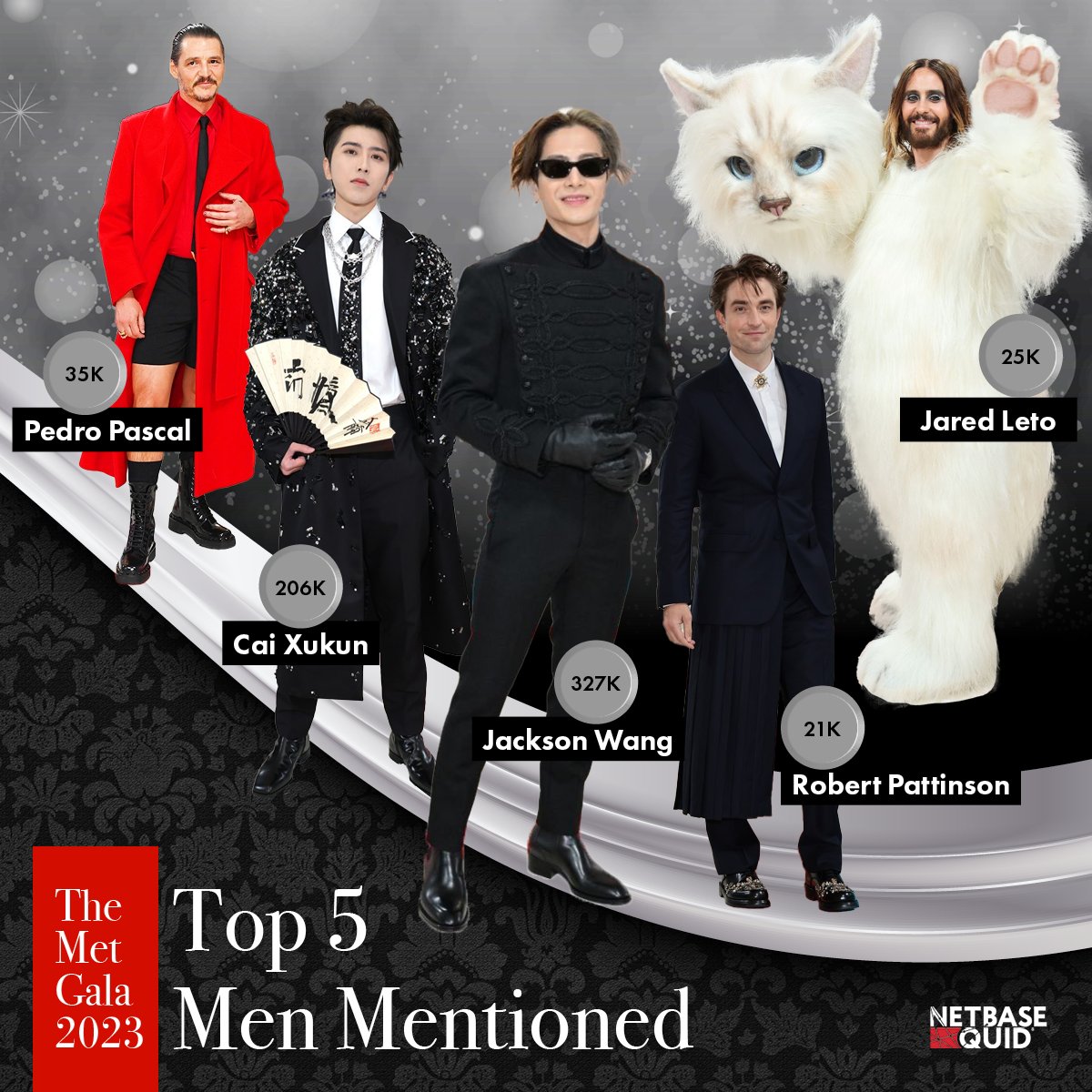NetBase Quid according to the analysis and statistics of social media data, Jackson Wang and Cai Xukun are the most mentioned male stars (most concerned) in Met Gala this year, and the number one female star here is BLACKPINK Jin Jenny.