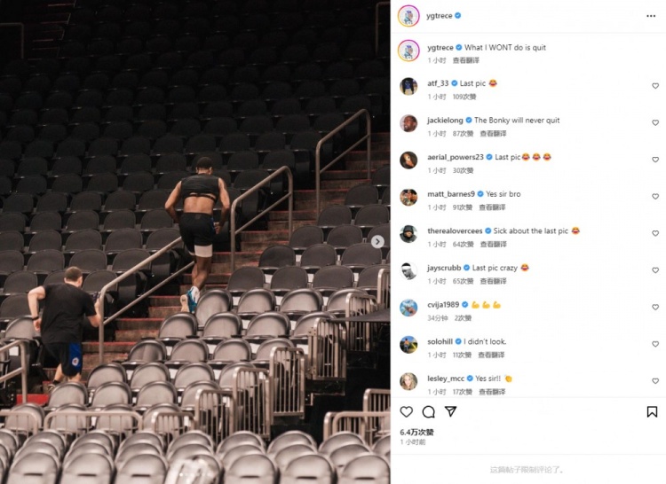 He basked out his training photos on the court and wrote, “What I won’t do is stop.”