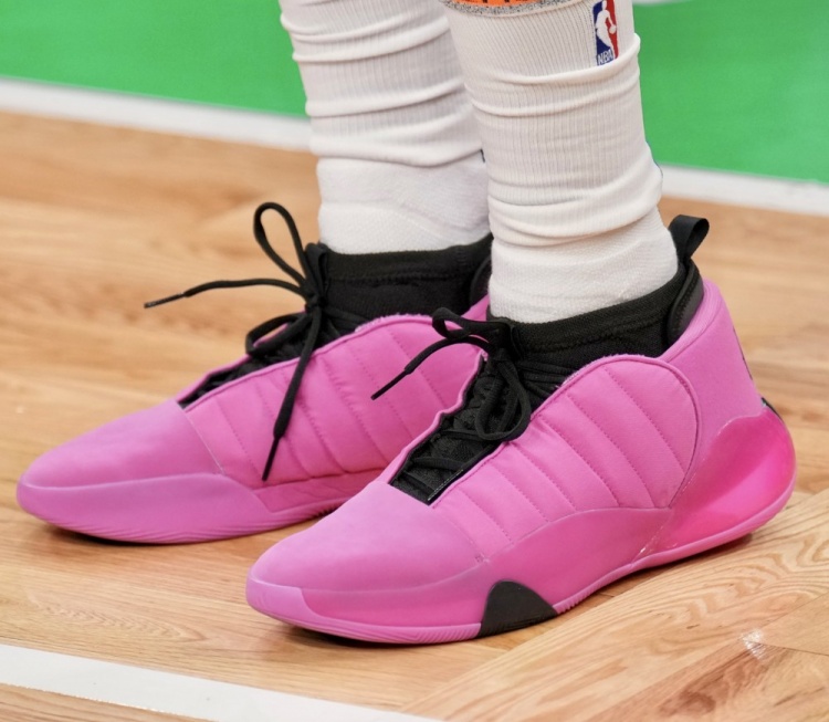 In this campaign, the 76-player star Harden put on the personal seventh-generation signature boots with the color matching of “Lucid Fuchsia (Clear purple red)”, and added the customized word “UNO” and personal art avatar to the heel!