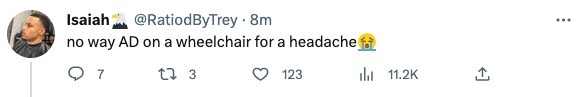 @ RatiodByTrey: No, heavy eyebrows just have a headache and sit in a wheelchair?