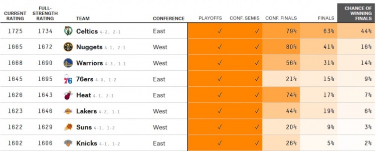 After the game, according to the prediction of big data agency FiveThirtyEight model, the probability of the hot fire reaching the east decision was 74%, while that of the Knicks was 26%.