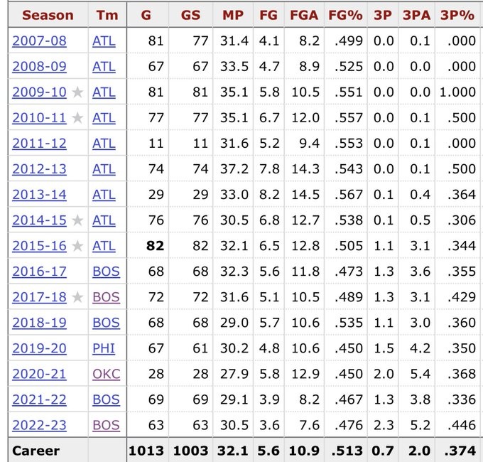 According to statistics, Horford’s three-point hit rate this season is as high as, which is the highest hit rate in the season with three-point shots in all games of his career.