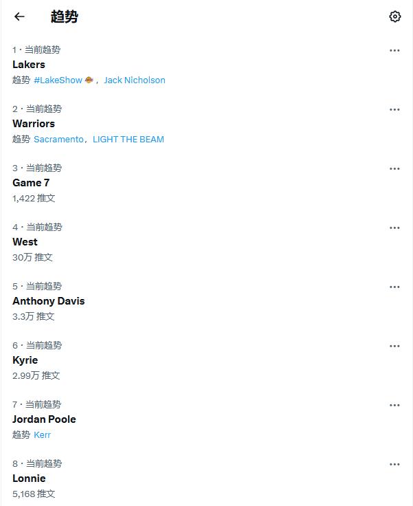 After the game, the Lakers rushed to the first place in the US Twitter hot search list, the Warriors ranked second, and the seven (Warriors vs Kings) ranked third!