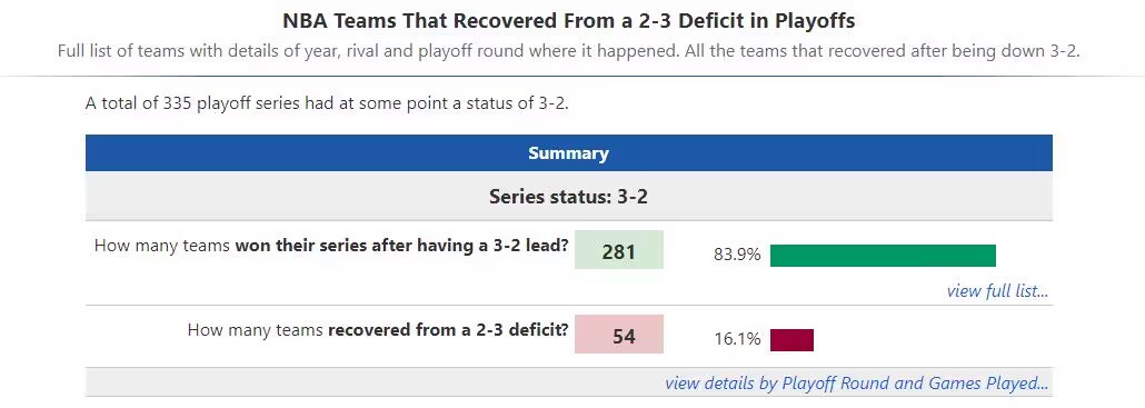 According to statistics, in the 335 series in history, 281 of the 3-2 leading teams eventually eliminated their opponents and 54 of them were reversed.
