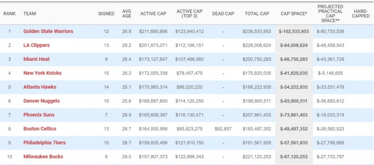 After the new labor agreement takes effect, the Clippers, warriors and other giants will be very uncomfortable by the second local tyrant line rules. According to relevant estimates, the second local tyrant line in the 23-24 season is 0.1795 billion US dollars, while the salaries of Warriors and Clippers All exceed this number. Heat, Nuggets, Sun, the salaries of teams such as Celtics are also close to this figure. These teams may not be able to use the middle class exception during the off-season this year, and they will not be able to Taobao in the buyout market next season.