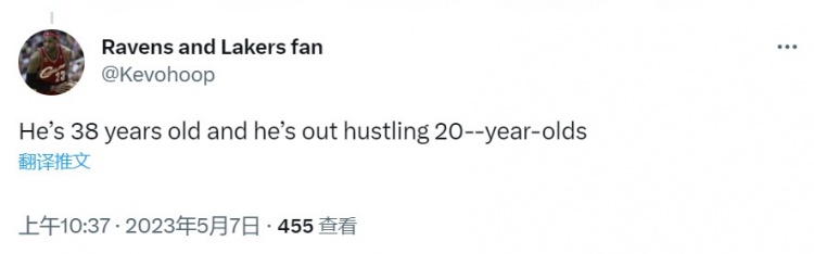 Ravens and Lakers fan: he is 38 years old, but he fights like 20 years old.