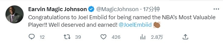 The magician even offered congratulations to enbide, who wrote: “Congratulations to Joel enbide for being elected as NBA regular season MVP!! You deserve it! @ Enbide”