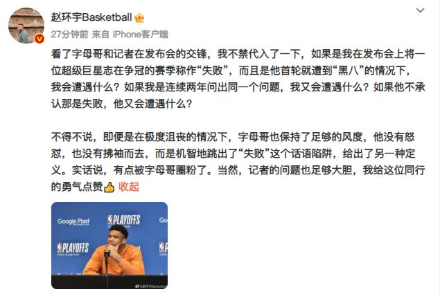 Zhao Huanyu Fabo, a domestic media person, talked about this: “After reading the confrontation between brother alphabet and the reporter at the press conference, I couldn’t help but substitute it, what would happen if I called a superstar’s season of winning the championship” failure “at the press conference and he was” black eight “in the first round? If I am asked the same question for two consecutive years, what would happen to me? Yogueta didn’t admit that it was a failure, what would he encounter?