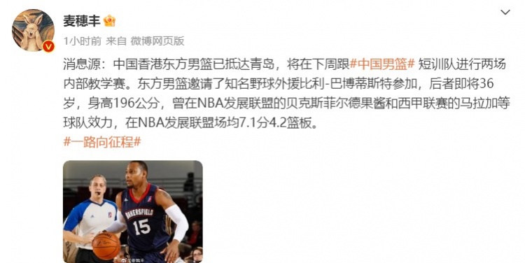 Just today, according to the report of domestic media person @ Mai Suifeng, Hong Kong Oriental men’s basketball has arrived in Qingdao and will hold two internal teaching competitions with men’s basketball short training team next week.