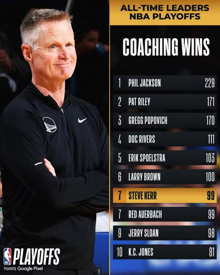 After this game, the number of playoff wins coached by Cole reached 99, and the seventh place in NBA history was tied with “cardinal” Auerbach.