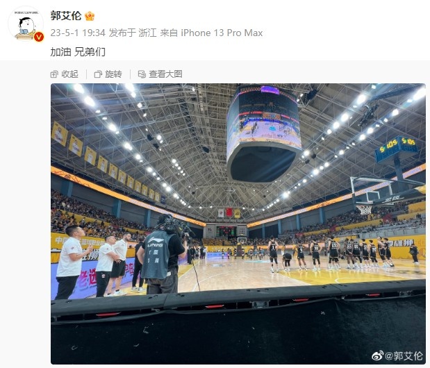 Related news: Guo Allen missed G3 against Guangsha and appeared on the court to watch the ball.
