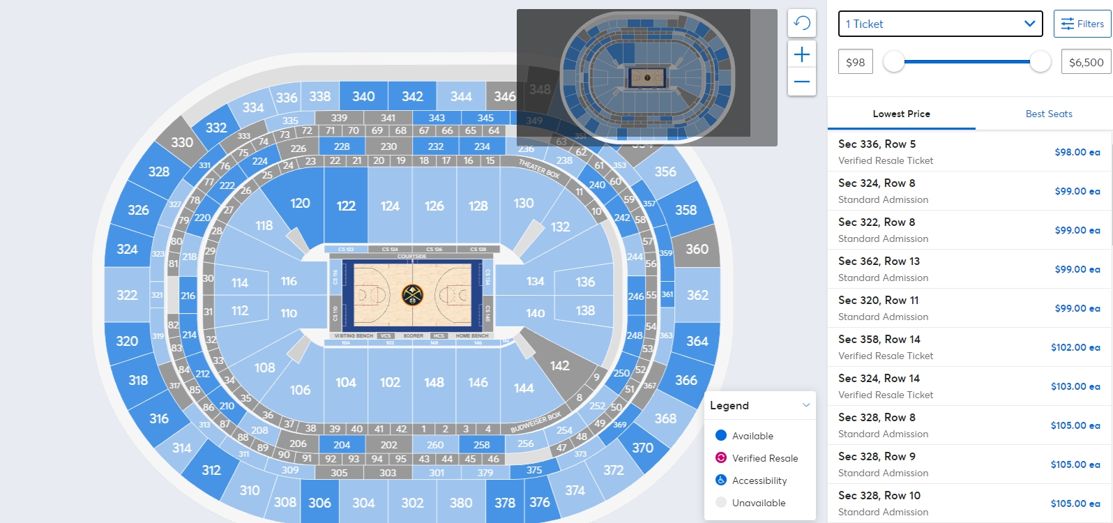 The Nuggets released information about the sale of G5 tickets, of which the lowest ticket price is 98 US dollars and the highest ticket price is 6500 US dollars.