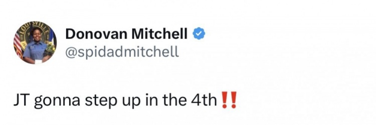 In this game, Knight star donowan-Mitchell was also present to watch the game and hugged Tatum after the game. Interestingly, before the beginning of the fourth quarter, Mitchell once made a prediction. He wrote, “Tatum will stand out in the fourth quarter!!”