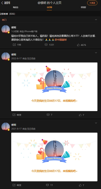 Lose to the opponent blame yourself for not being as skilled as others, lose! Losing to other factors is really unwilling! People are doing things and watching. May those who have ghosts in their hearts not live well!” Lou Ming wrote. Lou Ming has not actively published any microblog in the past three years.
