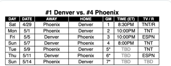 G7 (if necessary): May 15, Nuggets home
