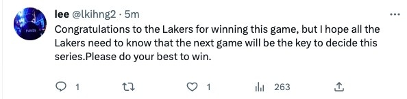 @ lkihng2: Congratulations to the Lakers for winning this game, but I hope the Lakers all know that the next game will be the key World War I of the series. Please continue to give everything to win.