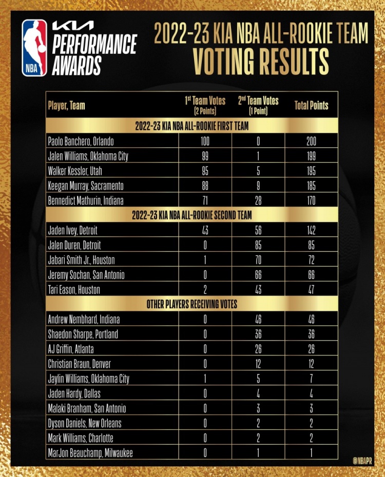 Live Bar News on May 9th today, NBA officially announced the best rookie of this season, specifically: bankero, Kessler, masserin, Kegan-Murray, Jay-Williams.