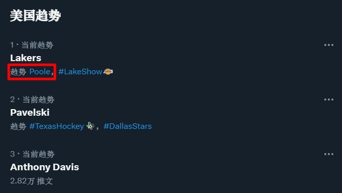 After the game, the “Lakers” and the “Poole” entry quickly rushed to the top of the national Twitter hot search list.