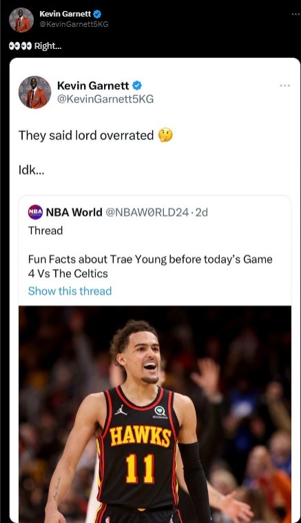 Previously, Garnett questioned the statement that “Trey-Yang is overvalued. After today’s game, Garnett forwarded his tweet, which firmly questioned this statement.