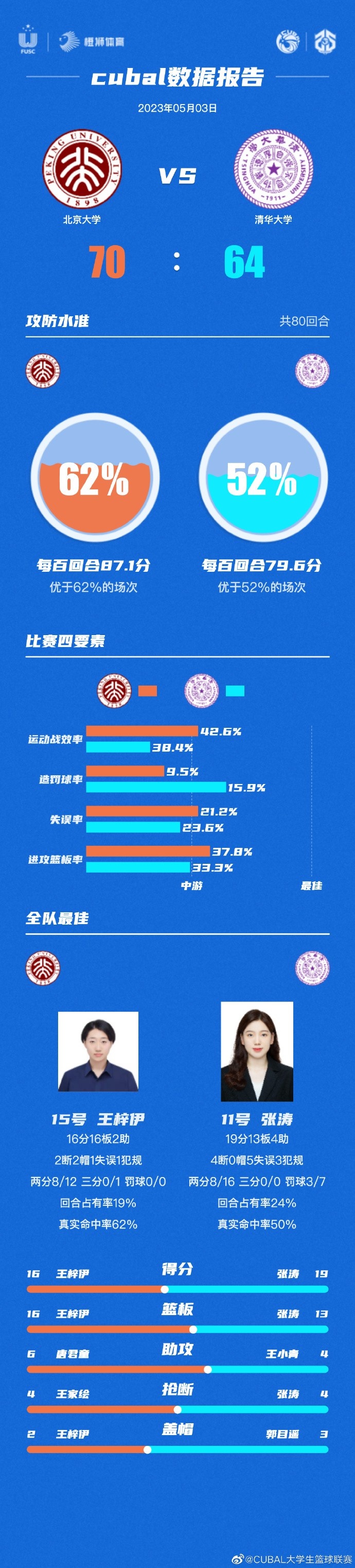 On the second festival, Tang Juntong scored three points to stabilize the situation, but immediately Wang Xiaoqing also put on the basket to pay back. After two points of high sirain, Tsinghua University gradually expanded its advantages, and Peking University called for a pause. But after the suspension, it did not stabilize the situation, but let Tsinghua seize the opportunity to expand the score difference again. At the critical moment, Wang qiorui successfully stabilized the situation by stopping bleeding three points, while Wang Wei continued to write a three points successfully reducing the difference to within one round. But immediately Yuan Xinyue returned a three points to keep the difference. The first half ended with a score of 32-38.