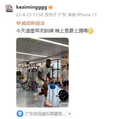 Live broadcast bar, April 23 -cba official photojournalist @ keaiminggggg updated social media to show photos of weimes training at the Guangdong team training base.
