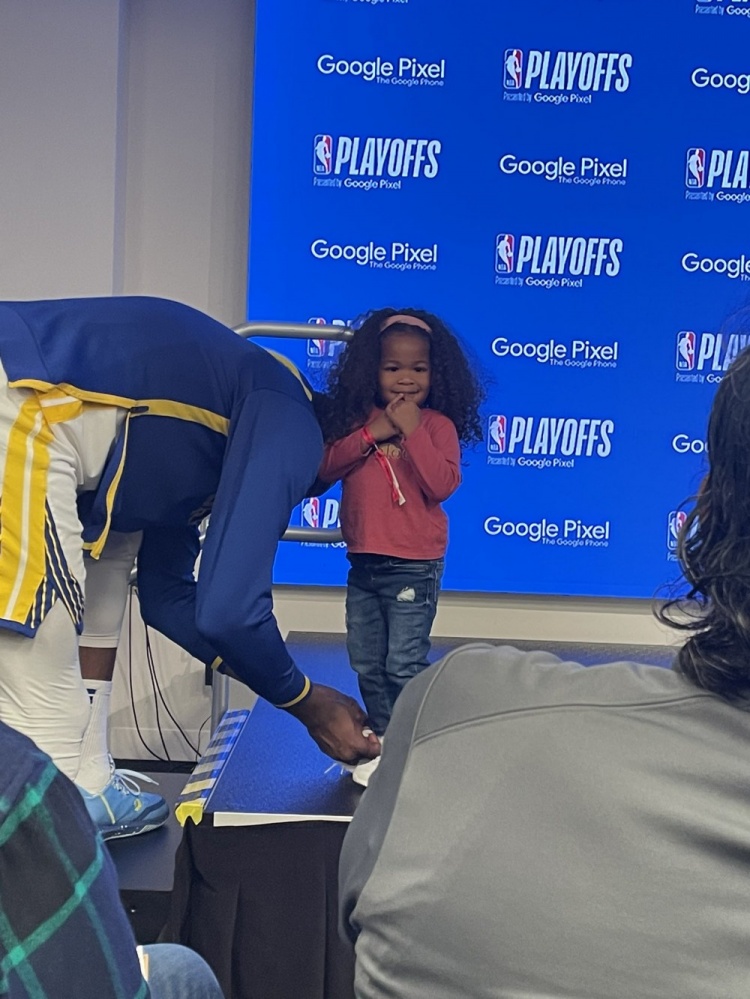 After chasing dreams, he attended the press conference and took his two children with him. In the press conference, there was also a scene of heart warming, chasing dreams and leaning down stout figure to tie shoelaces patiently for his daughter, which was in sharp contrast to his style on the court.