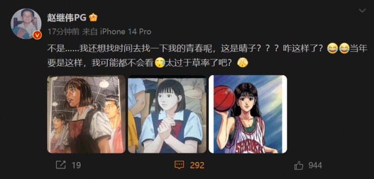Live broadcast bar, April 21 today, Liaoning defender Zhao Jiwei is more likely to complain about the style of Slam Dunk film version Haruko Akagi on social media.