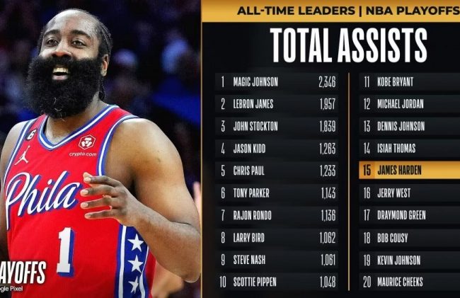 Live broadcast, May 6th, NBA Playoffs, 76 people played the Celtics at home today, which was the third match in the two-team series. As of press release, Harden has sent 5 assists, thus his playoff career assists came 972 times, surpassing Jerry West and rising to the 15th in the playoff history assist list.