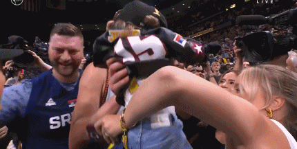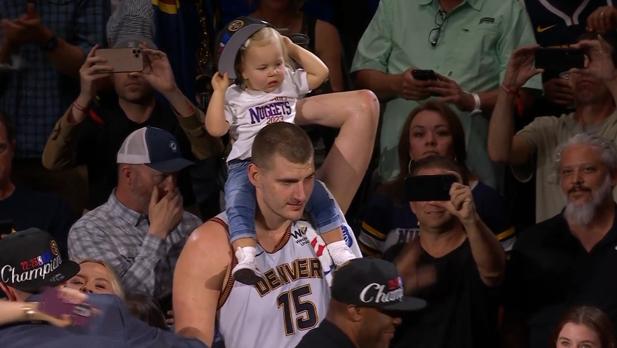 After the Nuggets won the championship Before the end of the game