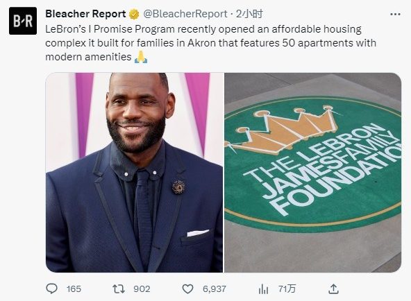 Live Bar, June 16 according to the Report of American media Bleacher, The LeBlanc-James Family Foundation established by James recently completed another Charity Act. LeBlanc’s I Promise project recently built an affordable housing complex for Akron’s families, including 50 apartments equipped with modern facilities.