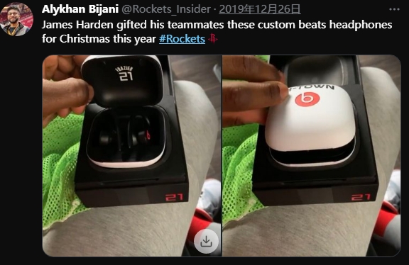 In 2020, the Rockets grabbed seven Thunder in the first round, but failed to defeat the Lakers in the second round to stop the semi-finals. Before the start of the playoffs, rocket Star Harden gave each teammate a Beats headset.