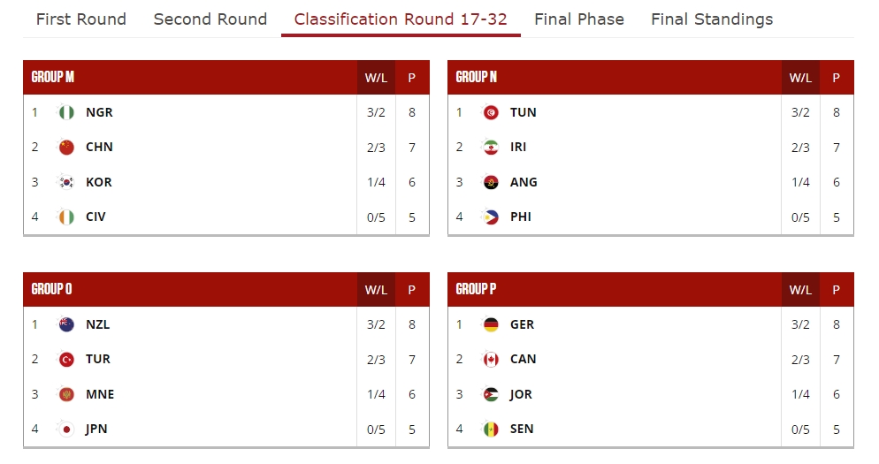 Asian and African teams all fall into a position in 17-32 ranking matches